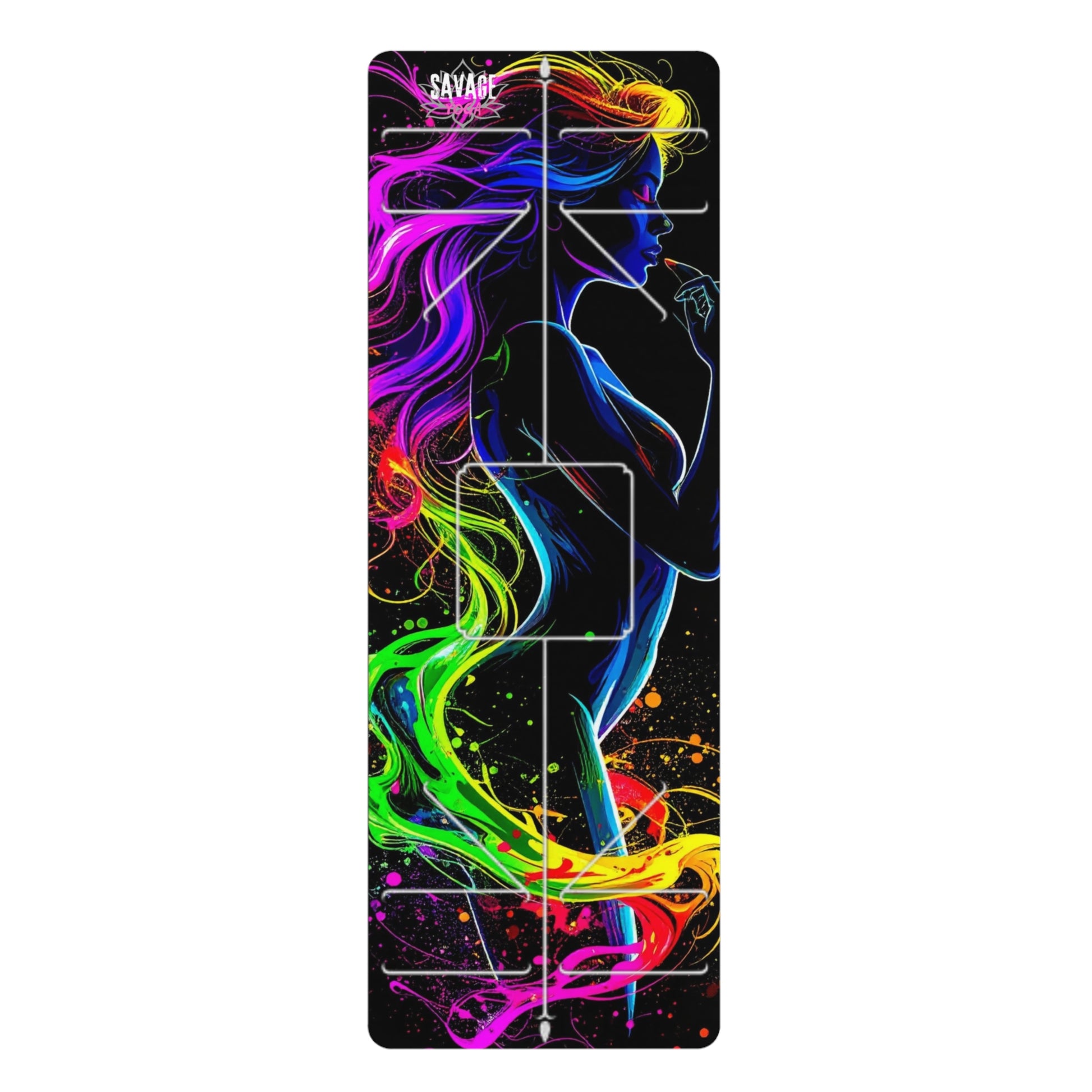 Unleash your inner fire with the Neon Muse Yoga Mat, a fierce fusion of art, movement, and energy. Featuring a striking silhouette surrounded by electric rainbow currents, this mat turns every practice into a work of self-expression. It’s bold. It’s wild. It’s undeniably Savage.